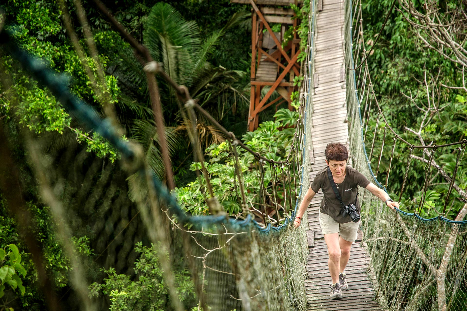 Canopy Walk If you are someone who likes emotion, this is a good experience that you should not miss. We will climb a platform by means of a beautiful suspension bridge until we reach the top of an immense tree, which does not rise over the top of the other trees, where we can enjoy a unique view of the Amazon